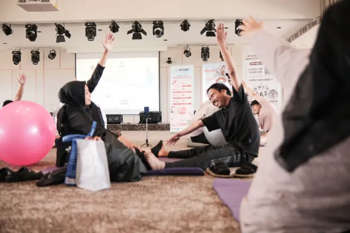 Melalui gerakan ringan, latihan pernapasan, dan relaksasi, pasangan diajak membangun komunikasi emosional yang lebih dalam. Suasana kelas terasa hangat, menyenangkan, dan penuh kebersamaan, menciptakan pengalaman kehamilan yang lebih tenang dan positif.