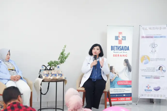 Setelah sesi senam, peserta mengikuti edukasi kesehatan bersama dr. Heika NS, M.Ked (OG), SpOG dari RS Bethsaida. Beliau membagikan informasi penting mengenai kehamilan sehat, perubahan tubuh yang perlu dipahami, serta tips mempersiapkan persalinan dengan tenang dan percaya diri. Diskusi berlangsung hangat dan interaktif, dengan banyak pertanyaan yang mencerminkan antusiasme peserta terhadap topik-topik yang dibahas.